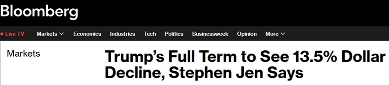 这位总部位于伦敦的资产管理公司Eurizon的首席执行官——以其“美元微笑”理论而闻名——押注美元指数在美国总统特朗普(Donald Trump)剩余的总统任期内将进一步下跌13.5%。
