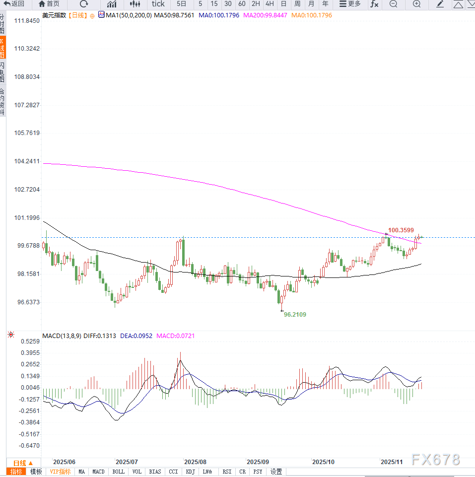 “我们需要谨慎评估12月会议的政策方向,在劳动力动能放缓与通胀压力之间取得平衡。”——费城联储主席 Anna Paulson这些言论反映出美联储内部对于过早放松政策仍保持高度警惕,程度上限制了美元指数的进一步下跌。